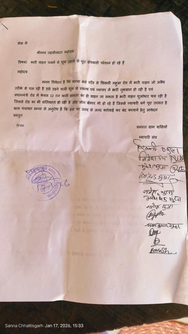 तेज रफ्तार भारी वाहनों से दहशत, धूल और दुर्घटना का खतरा बढ़ा, ग्राम पंचायत सन्ना में ग्रामीणों का आक्रोश