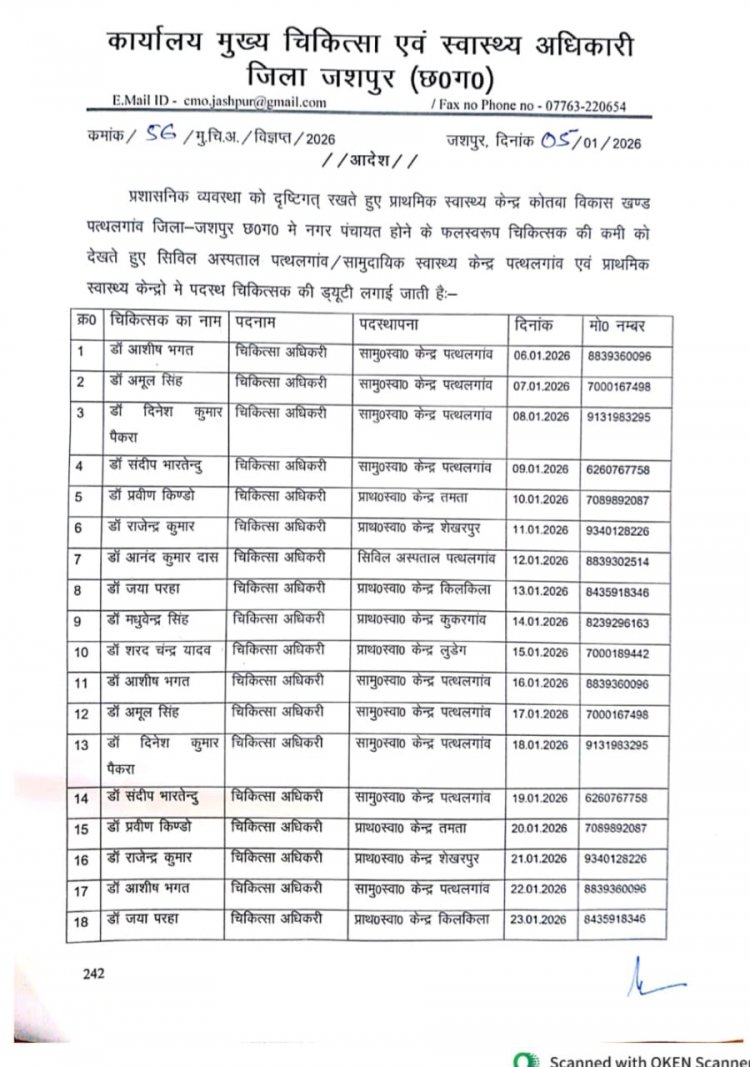 कांग्रेस जिलाध्यक्ष श्री यू. डी. मिंज ने प्रशासनिक व्यवस्था पर गंभीर सवाल खड़े करते हुए कहा कि पूरे प्रदेश में एक अद्भुत और अजीबो-गरीब उदाहरण सामने आया है। सामुदायिक स्वास्थ्य केंद्र, कोतबा में पिछले 6 महीनों से डॉक्टर की स्थायी पदस्थापना नहीं हो पाई है, जिससे क्षेत्र की जनता को भारी परेशानी झेलनी पड़ रही है।