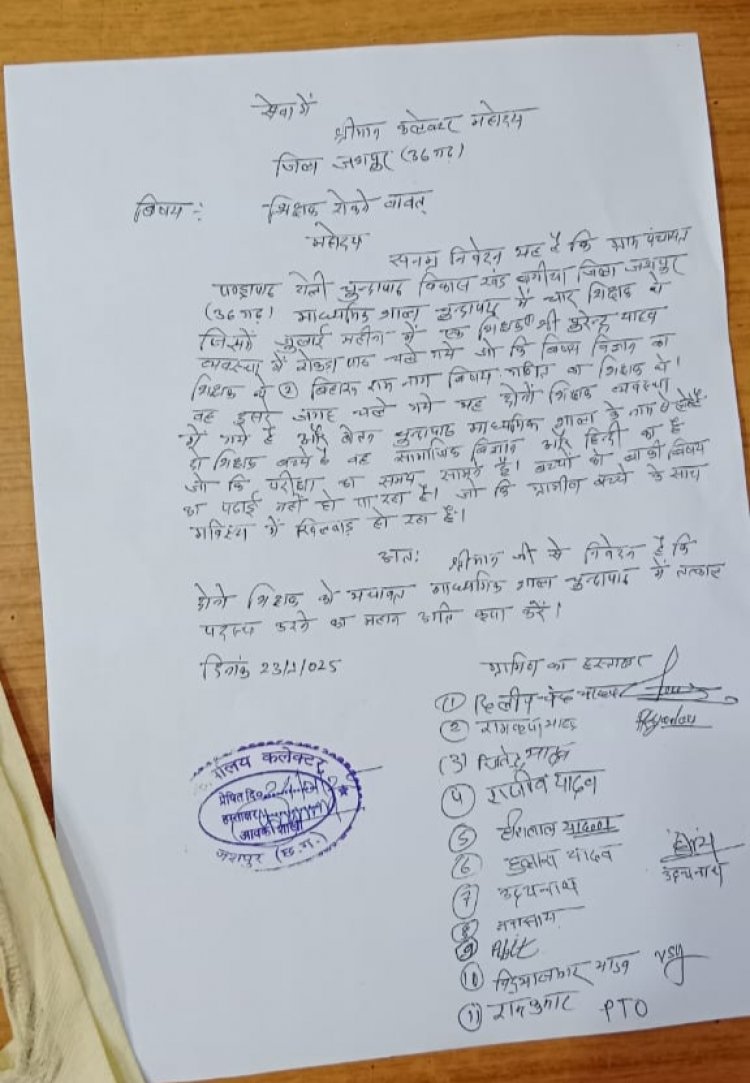 Big Breaking Jashpur: ग्रामीण बच्चों के साथ खिलवाड़ " सैकड़ों बच्चों का भविष्य 2 शिक्षकों के हाथों" शिक्षक की मांग करने चूँदापाठ के नाराज ग्रामीण पहुंचे कलेक्टर के पास " BEO ने कहा .... पढ़िए पूरी खबर