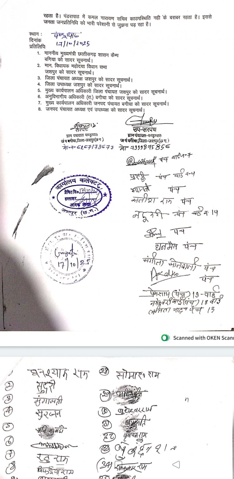 जशपुर : पंडरापाठ सचिव को हटाने मुख्यमंत्री से मिले ग्रामीण , सरपंच समेत 181 ग्रामीणों ने कलेक्टर , बगिया, SDM को दिया ज्ञापन, भ्रष्टाचार अनियमितता का मामला... पढ़िए पूरी खबर